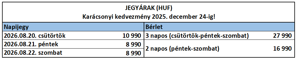 A rendezvényt rossz idő esetén is megtartjuk! Belépőjegyet nem váltunk vissza.